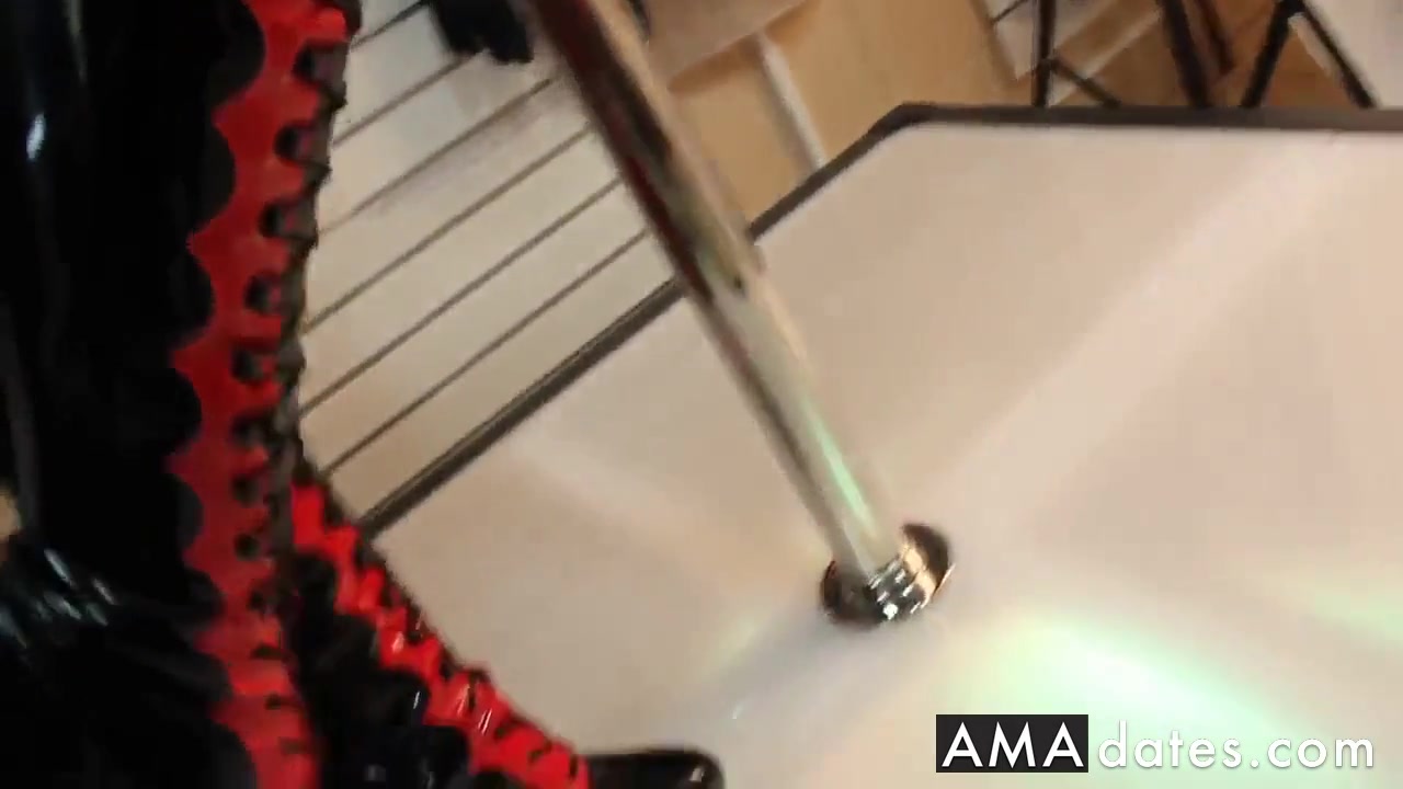 Very Sexy Dirty Girl In A Shiny Squeaky Creaking PVC Outfit PVC Thong Panties PVC Thigh High Platform Boots Love Her Ass.
