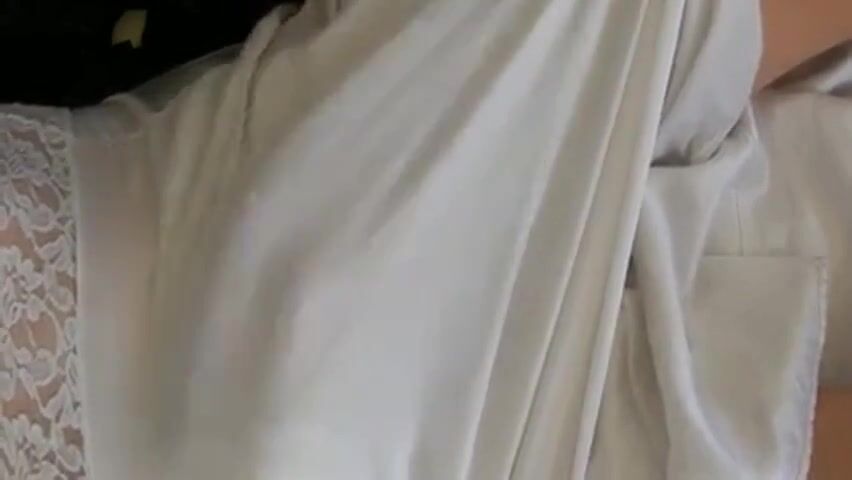 White nylon slip wank & cum