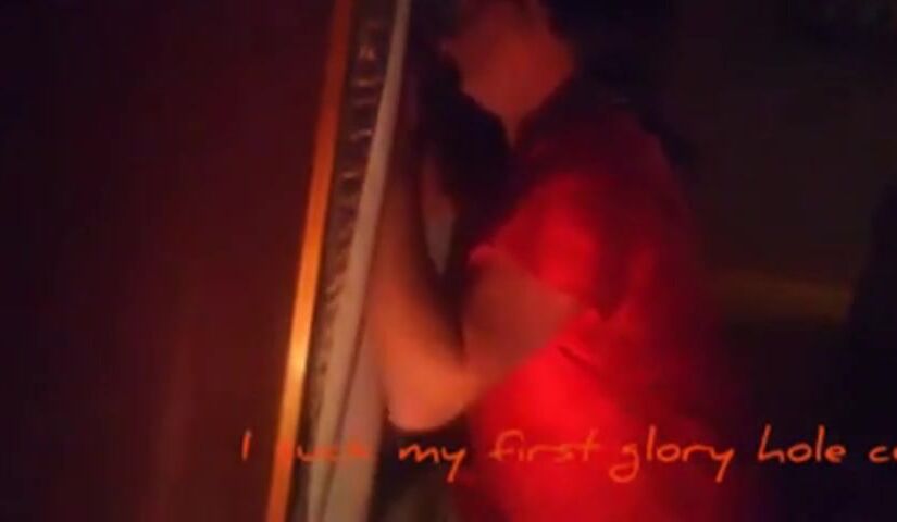 Gay sissy crossdresser sucks her first glory hole cock.