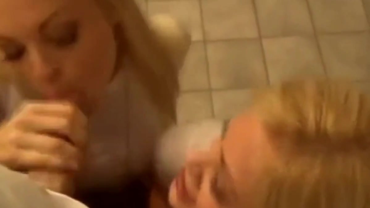 Double Blowjob in restroom