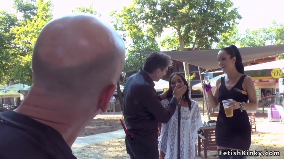 Suspended petite babe public fucked