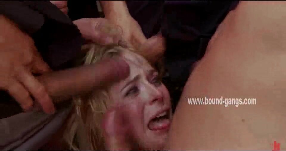 Handcuffed Blonde Forced To Suck Cocks