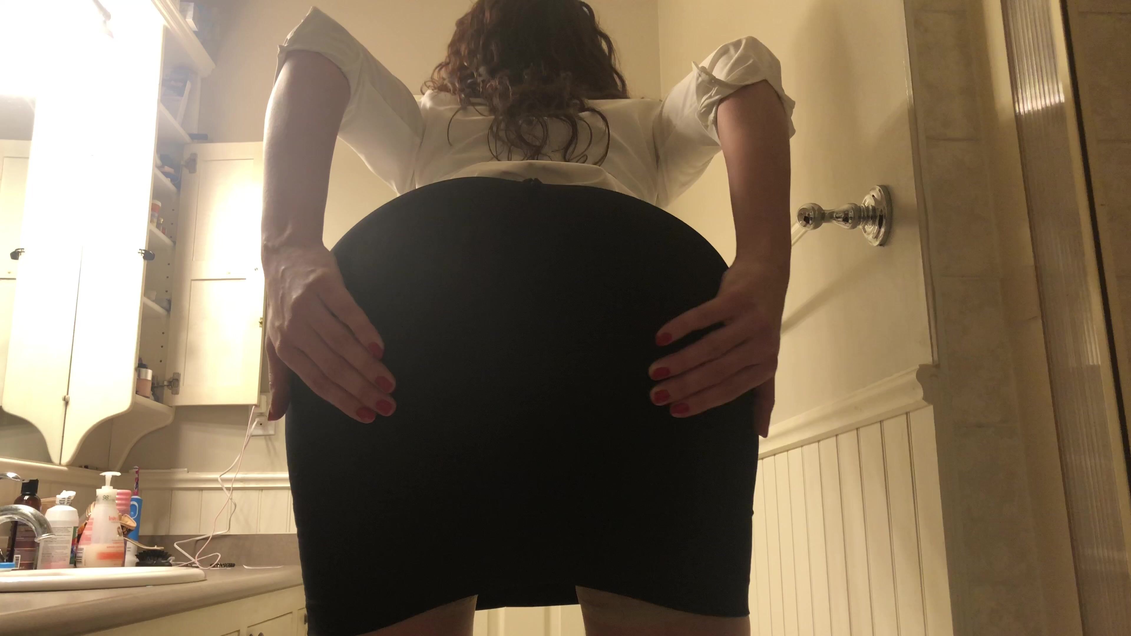 BizarroPornos.com - Black Leggings Tease Counter Poop