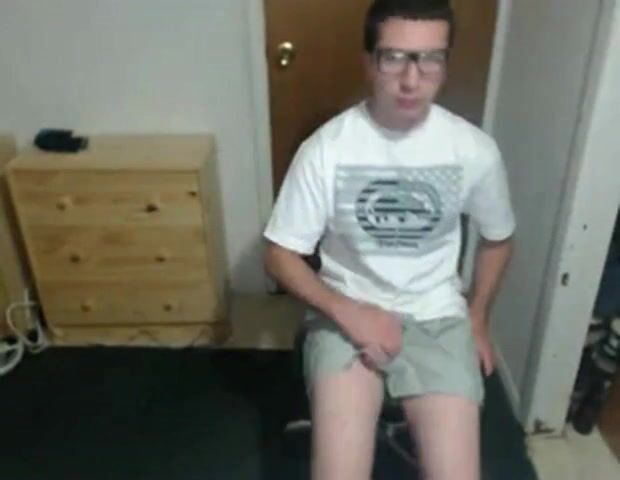 Cute nerdy boy cum to face on webcam