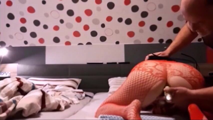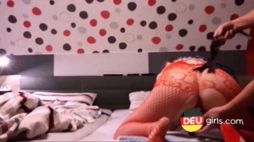 German Milf Simone with red catsuit whipped the guys balls. She get fingered her pussy, ashole an fucked in ass and pussy. Dildo playing including.