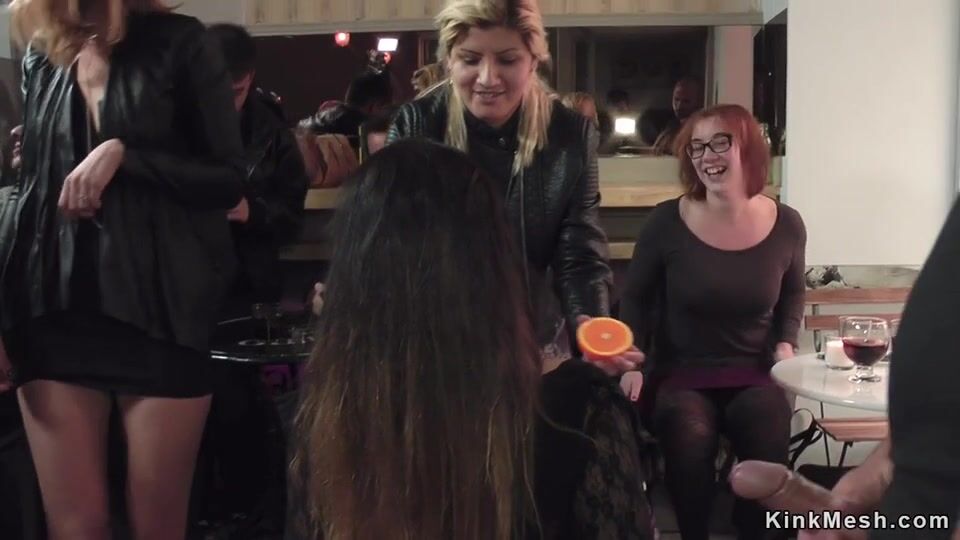 Hot bound brunette ass fucked in public