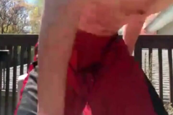 Guy jerks off outdoor and was caught after cumming. Hot body.