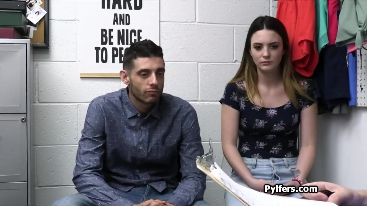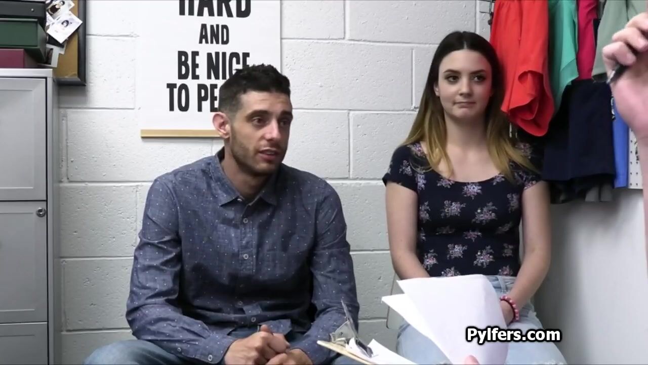 Thief couple gets escorted into the backroom for questioning. They have a choice to make... Michael the guard is going to bang the hot gf or they go to jail!