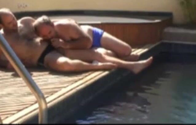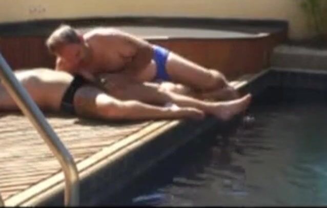 moustached daddy and bear fip flop sex by the pool