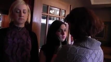 Busty mistress makes an obedient lesbian lick pussy