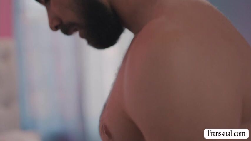 Horny shemale lets her guy friend toy and fuck her wet ass
