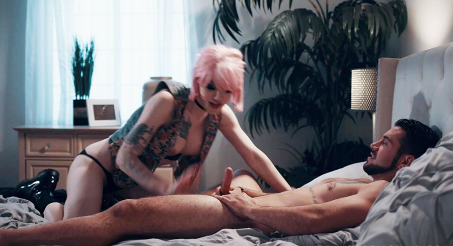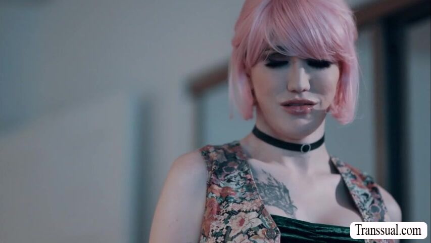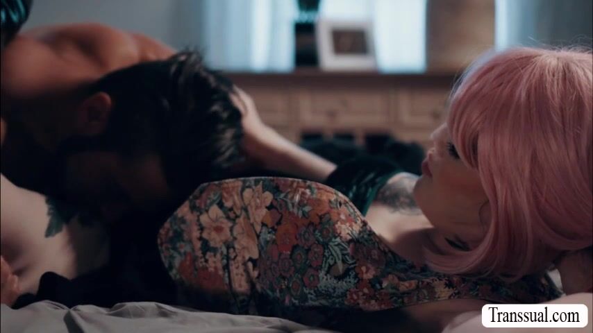 Busty shemale comforts her stepbrother because he looks so sad.After that,they start kissing each other and she then throats his big cock passionately and lets him fuck her wet ass so he will be happy again.