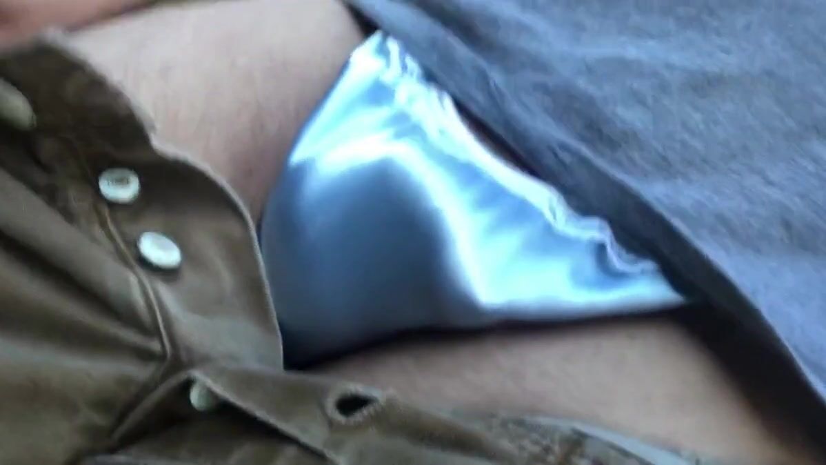 Showing my satin panties to a stranger outdoors