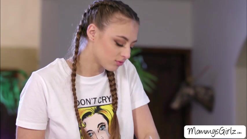 Hot teen Gia Derza gets on all fours to rub and lick stepmoms pussy