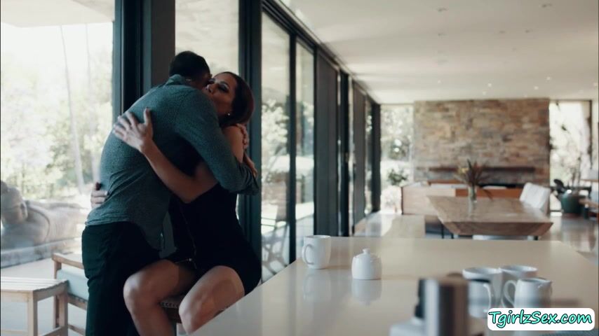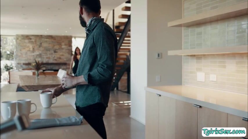 Busty and brunette ts superstar Sofia Sanders plays with her self in the bedroom when she caught her hunk stepson Chris Damned sneaking. She calls him in and kneels down to suck his dick in an instant and takes it from behind afterwards