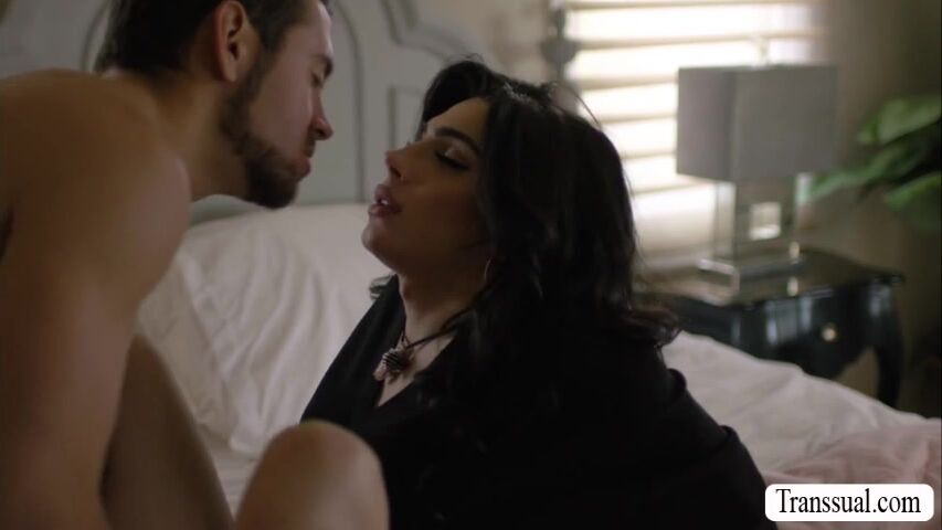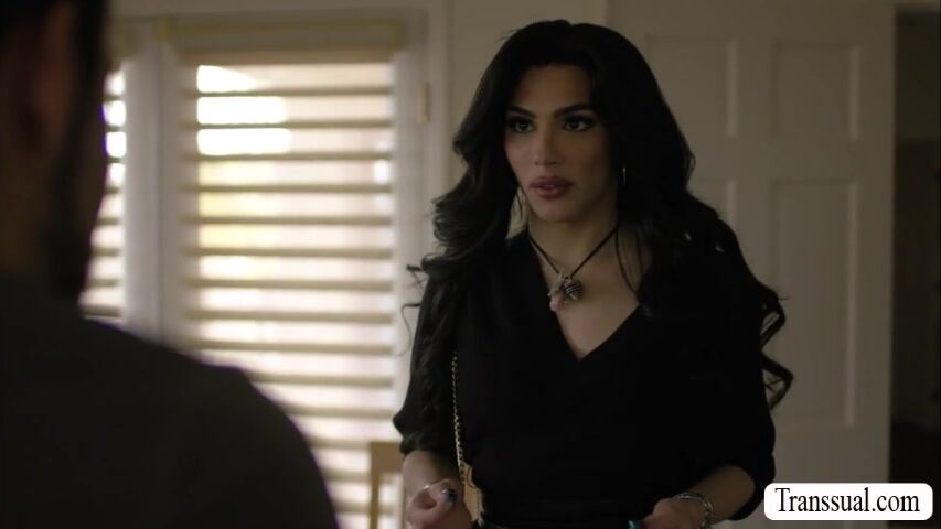 Brunette shemale goes to the house of her ex boyfriend and talk about the sex video he send to her.Instead of getting mad,they start kissing each other and she then throats his big cock passionately.Next is,she lets her ex boyfriend fuck her ass.