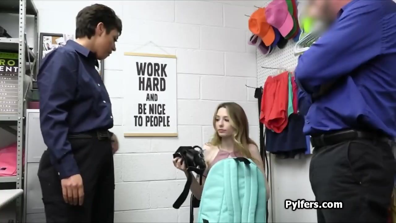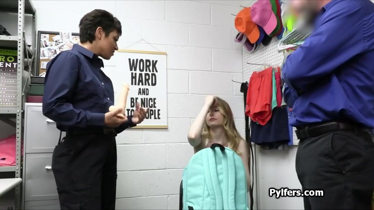 Seems like this sexy suspect tried to steal a bunch of dildos.. but she got busted so the female security guard used one of the dildos for fun!