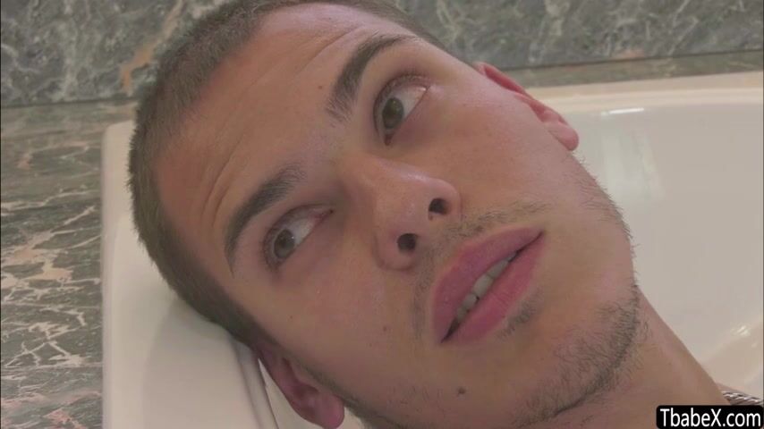 In the bedroom, gorgeous maid transwoman teases her handsome boss Tony Sting with flirty moves until he kisses her tenderly. The blonde transwoman knells down to suck his cock and he bangs her ass.