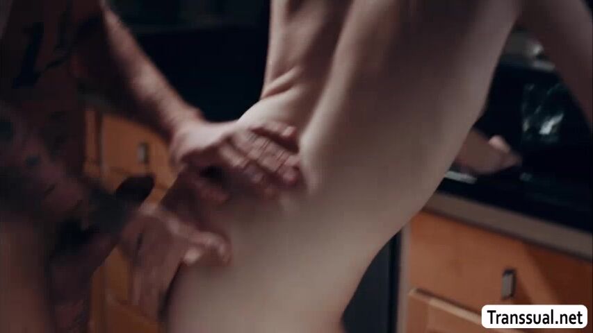 Slut shemale caught by her stepbrother sneaking in their house late at night.After that,she throats stepbrothers big cock so he wont tell their parents.Next is,she bends over and lets him fuck her wet ass so deep and hard.