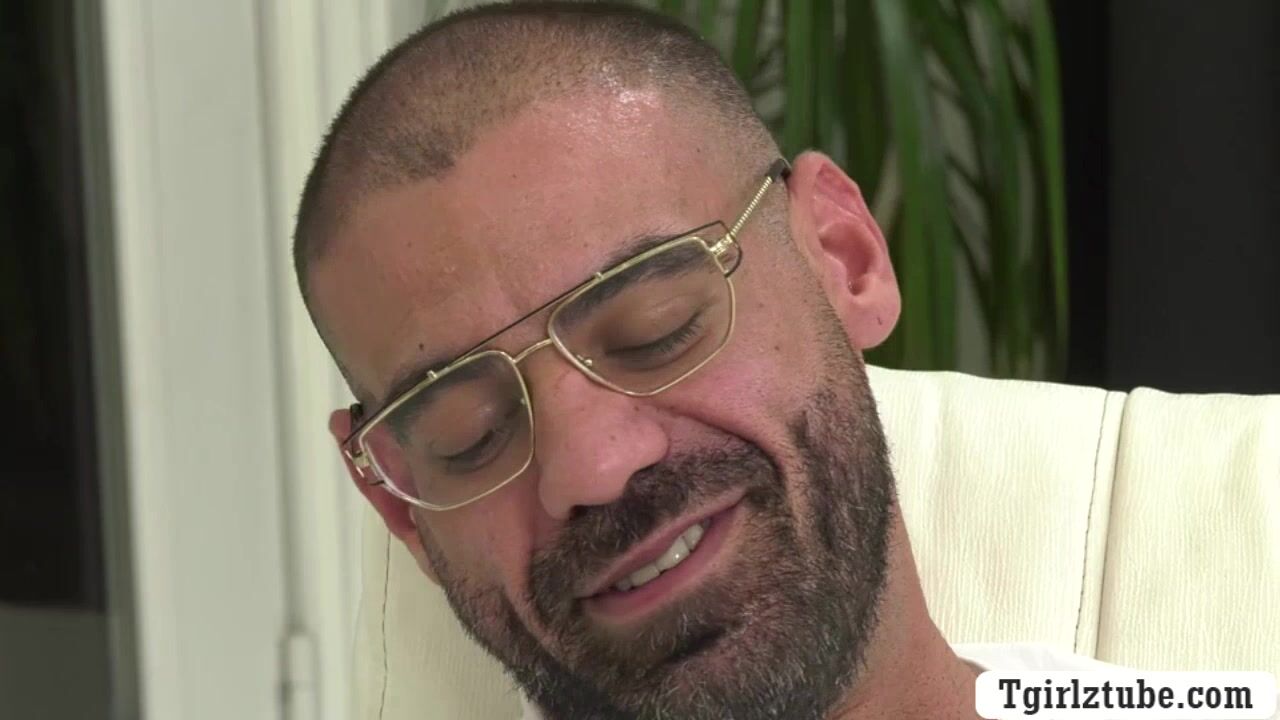 Busty shemale maid make her boss horny while shes cleaning in front on him wearing a sexy lingerie.After that,she lets him lick her ass first and in return,she throats his big cock passionately and lets him bareback her wet ass.