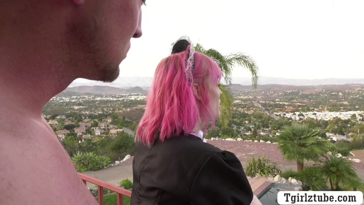 Pervert boss jerks off his big cock while his shemale maid are watching over.After that,he lets her throat his big cock passionately and in return,he barebacks her tight wet ass so deep and hard.