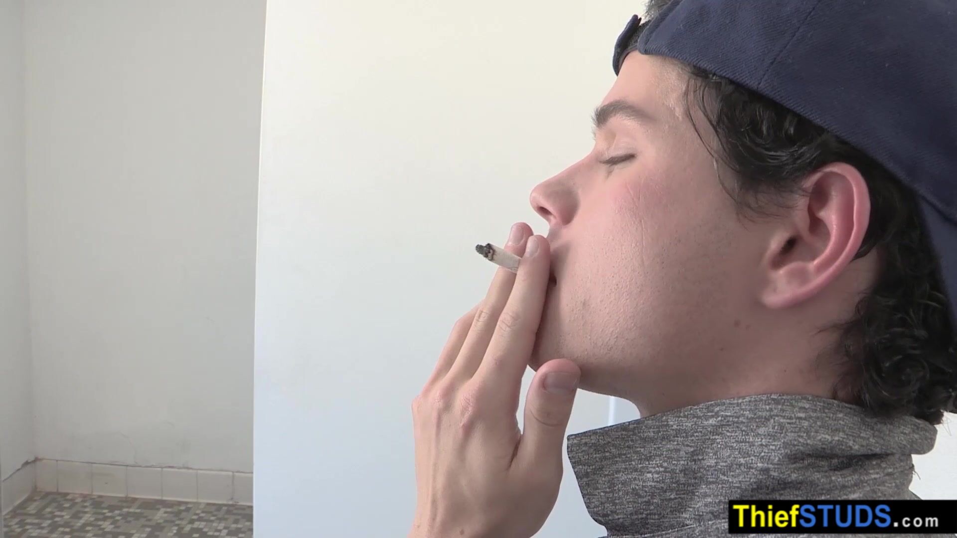 Forbidden cigarette ends on a officers big black cock