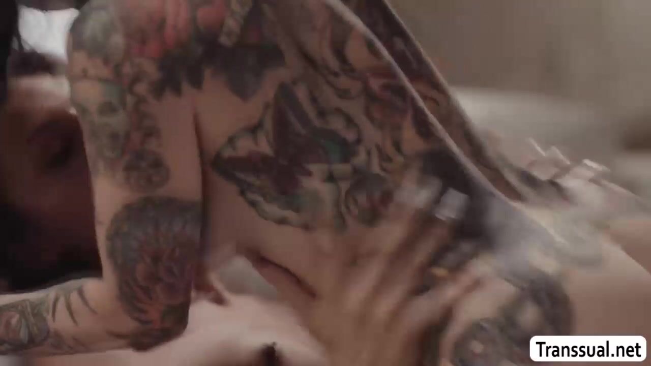 Tattooed stepmom gets licked and fucked by shemale stepteen