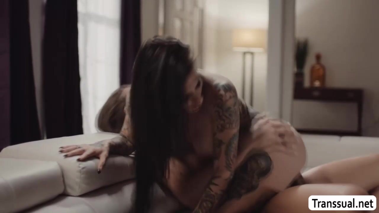 Big boobs tattooed stepmom talks to her trans stepdaughter about sex..After that,they get horny and they start kissing each other.Next is,big boobs stepmom sucks her stepdaughters tranny cock and lets her fuck her wet pussy in return.