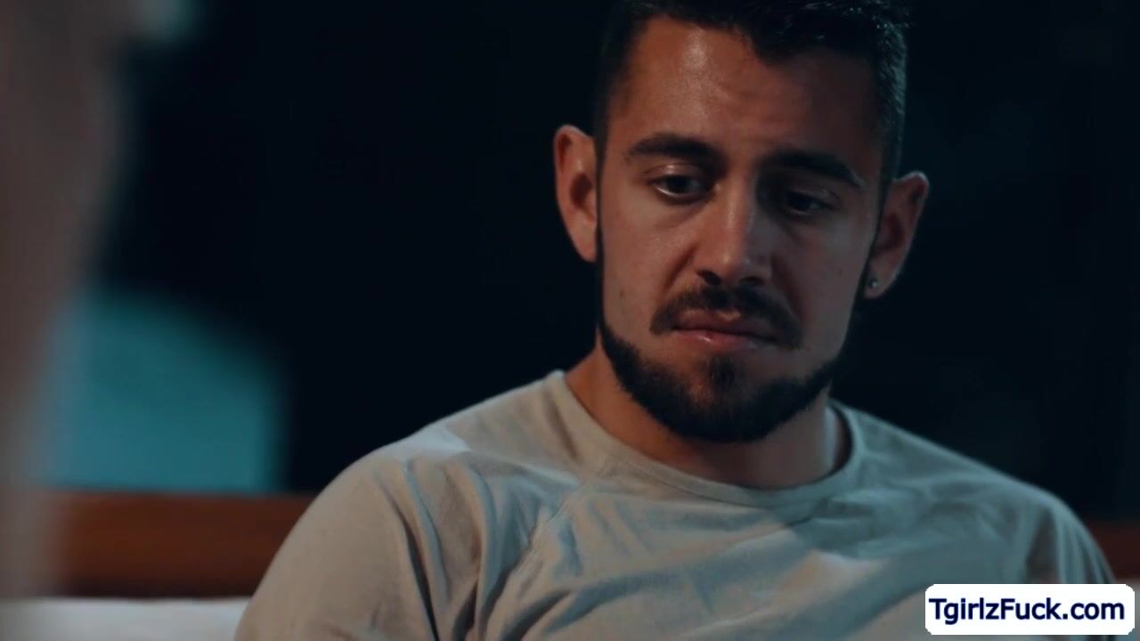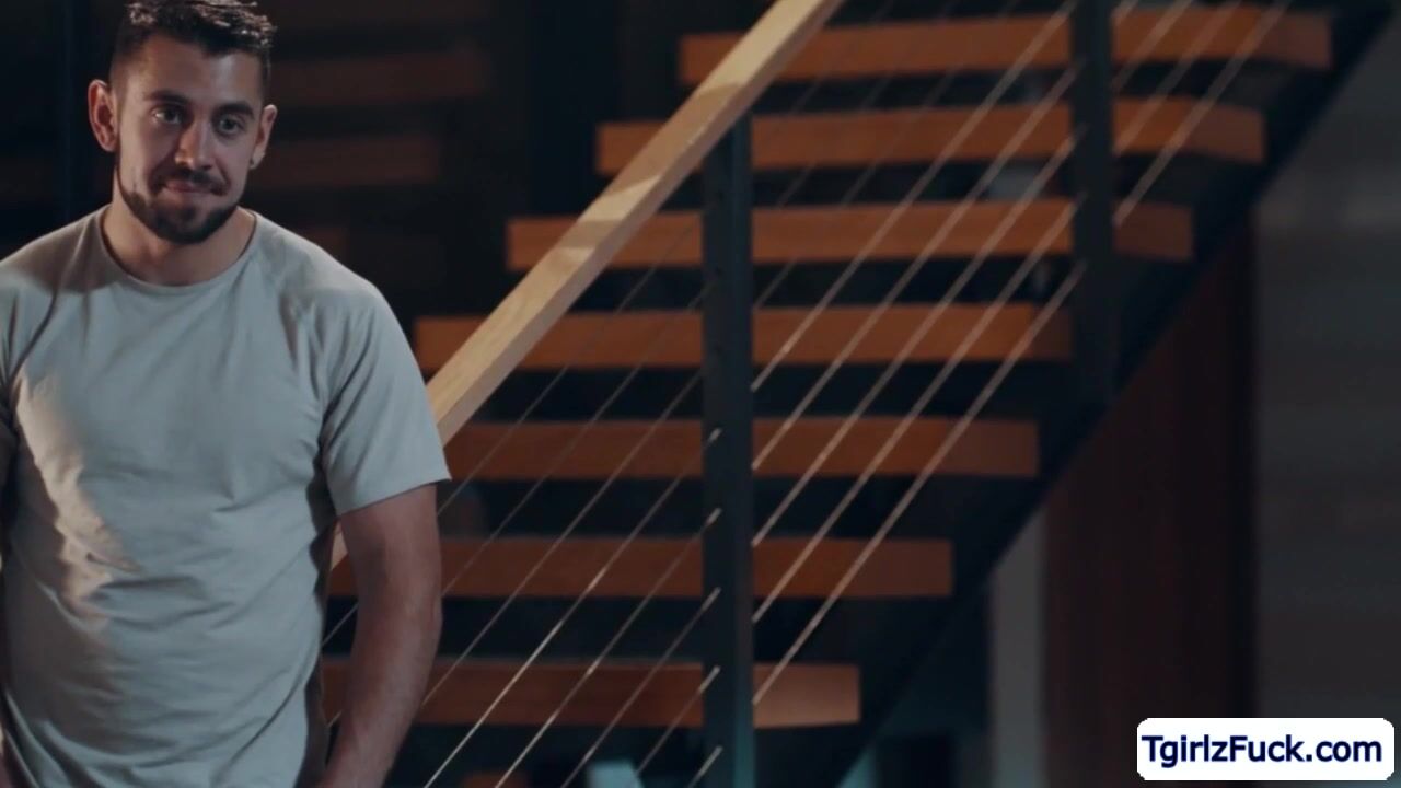 In the living room, busty blonde shemale Jamie French flirts with her stepson and kiss him torridly. The big tits ts stepmom deepthroats his big cock while stroking her tranny dick then stretches her big ass for a hardcore bareback in missionary.