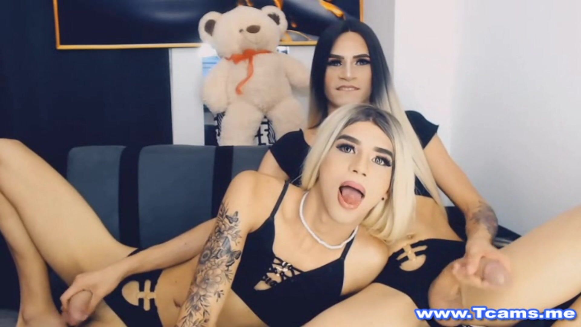 This gorgeous tranny looks hungry for a cock and deepthroated her friend with no hesitations. She licked and sucked his big hard cock. This two are sizzling hot as they keep on stroking their hard dicks and teases you with one of this hot tranny ass. She positioned herself into a wild style position and gets her tight ass rammed so wildly. They shows us their massive boner and strokes it really hard! Horny wild shemale masturbates her cock with so much pleasure.
