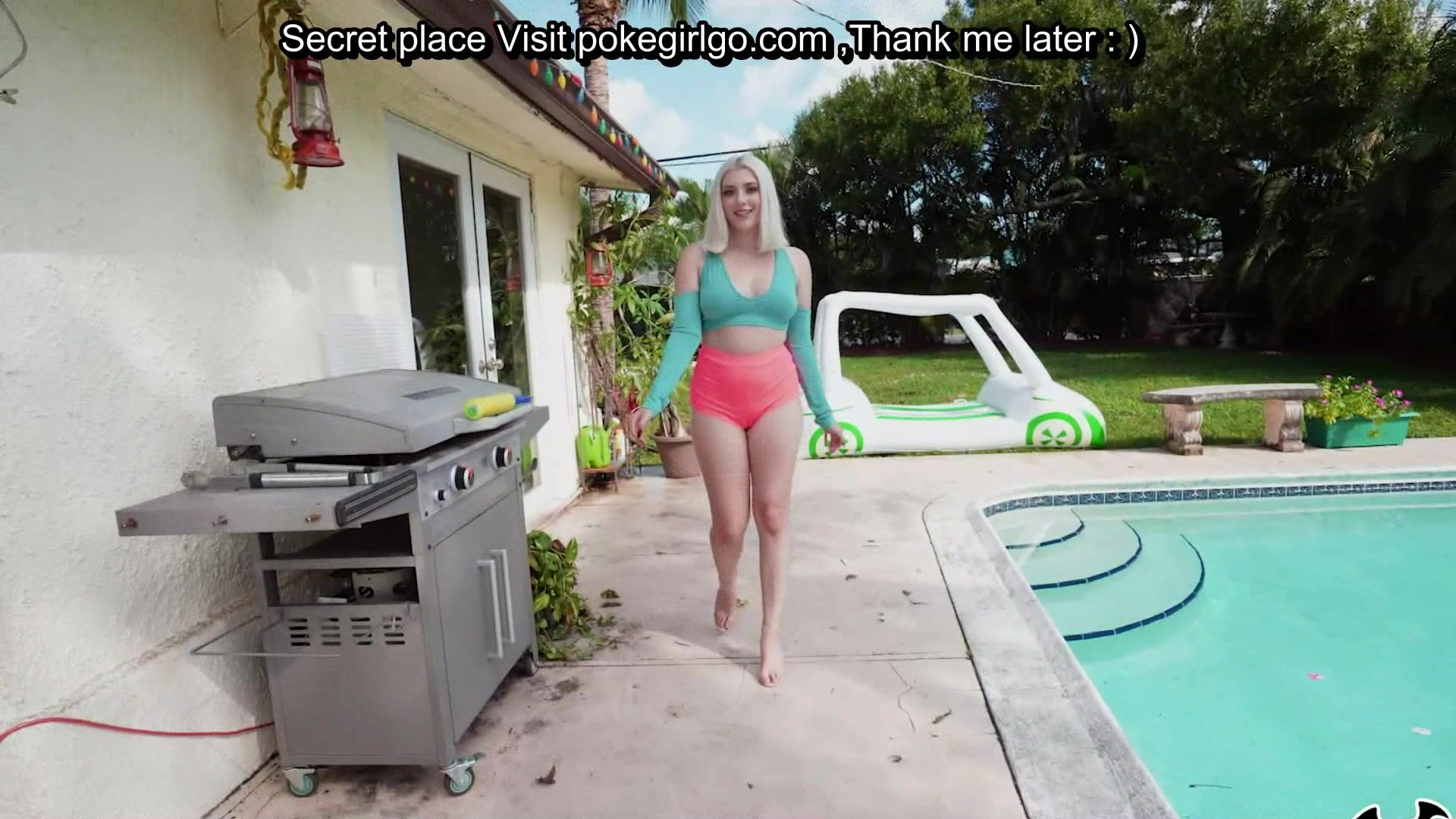 Blonde hanging out at the pool showing off her amazing body