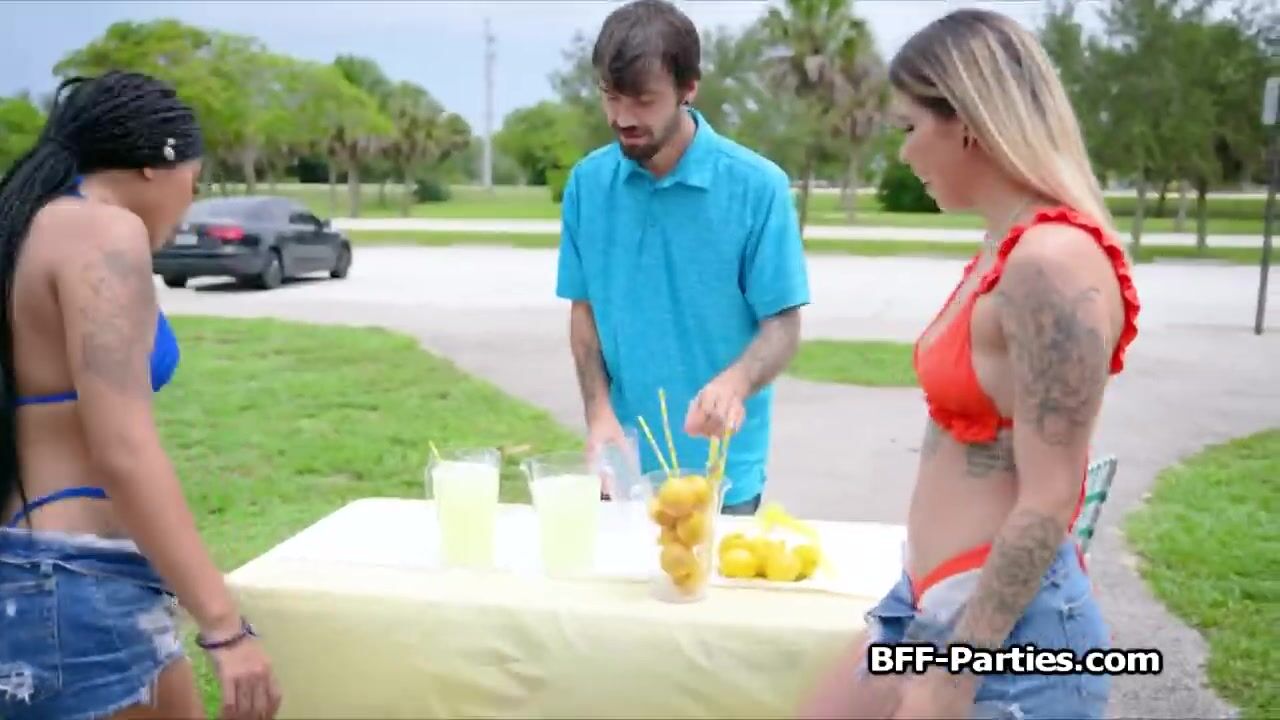Nade is going to be super happy with this deal. He gets to fuck three super hot bikini girlfriend just for buying a lemonade. Best buy for him ever!