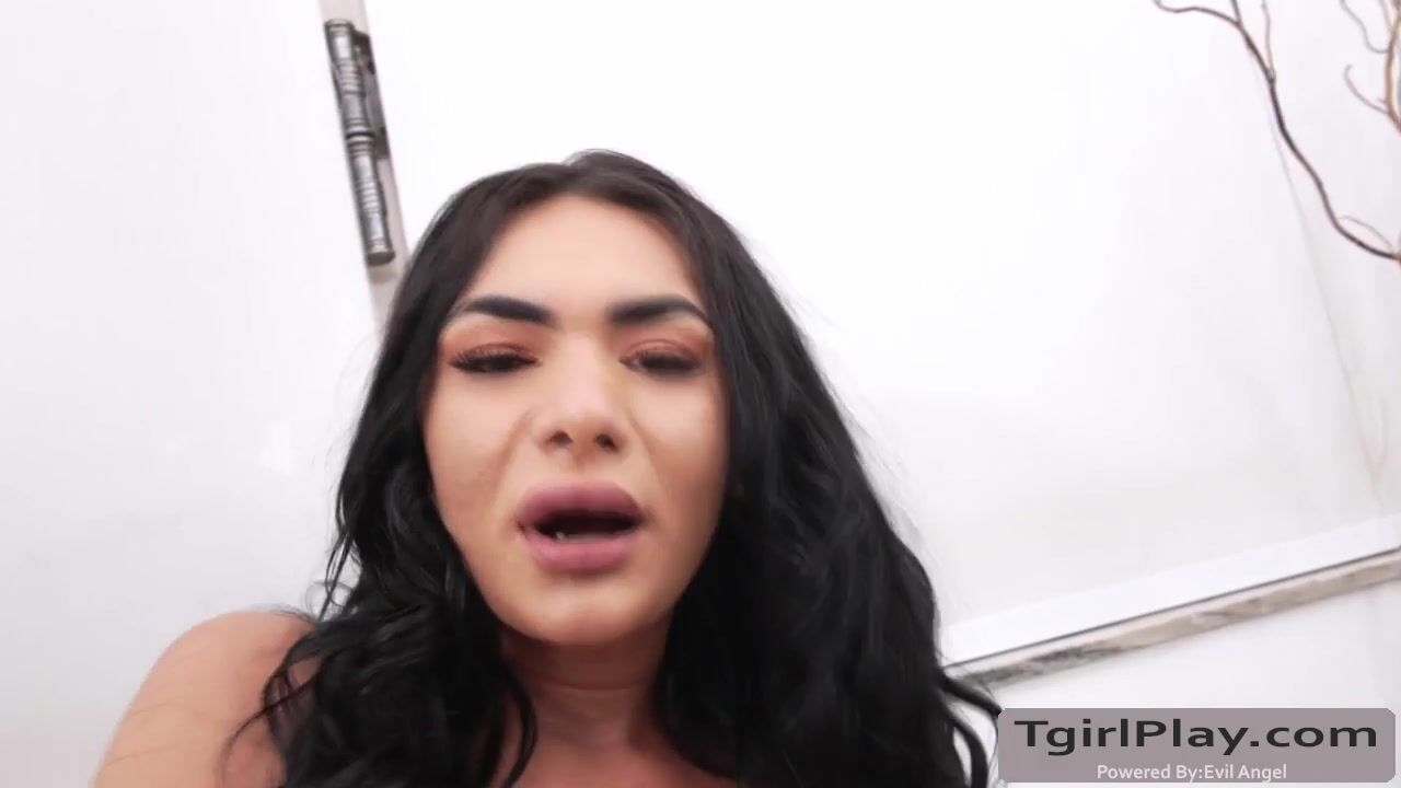 Busty brunette latina tbabe Kelly Mel maturbates tranny cock