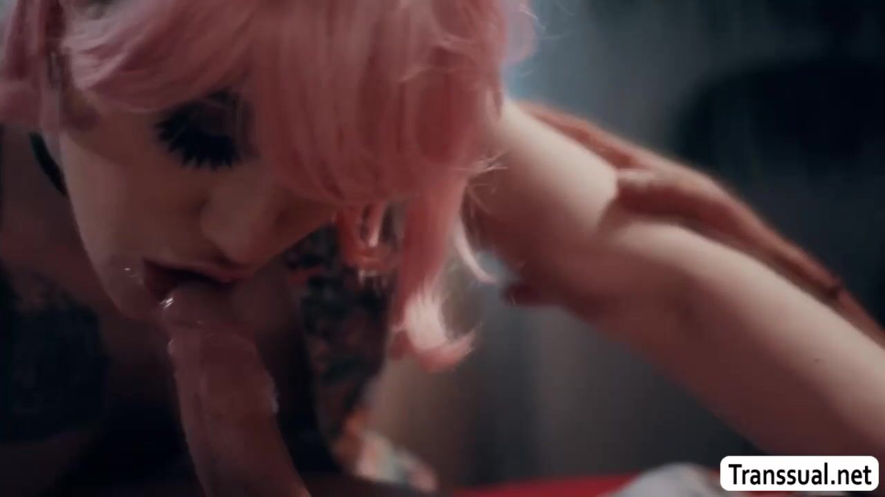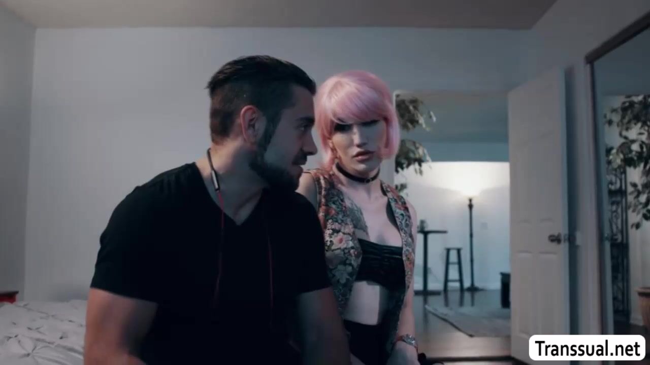 Bigtits pink haired shemale comforts her stepbrother in his room by letting him suck her hard tranny cock passionately.In return,bigtits TS does the same to her handsome stepbro.After that,slut trans lets stepbro bareback her wet ass so hard.