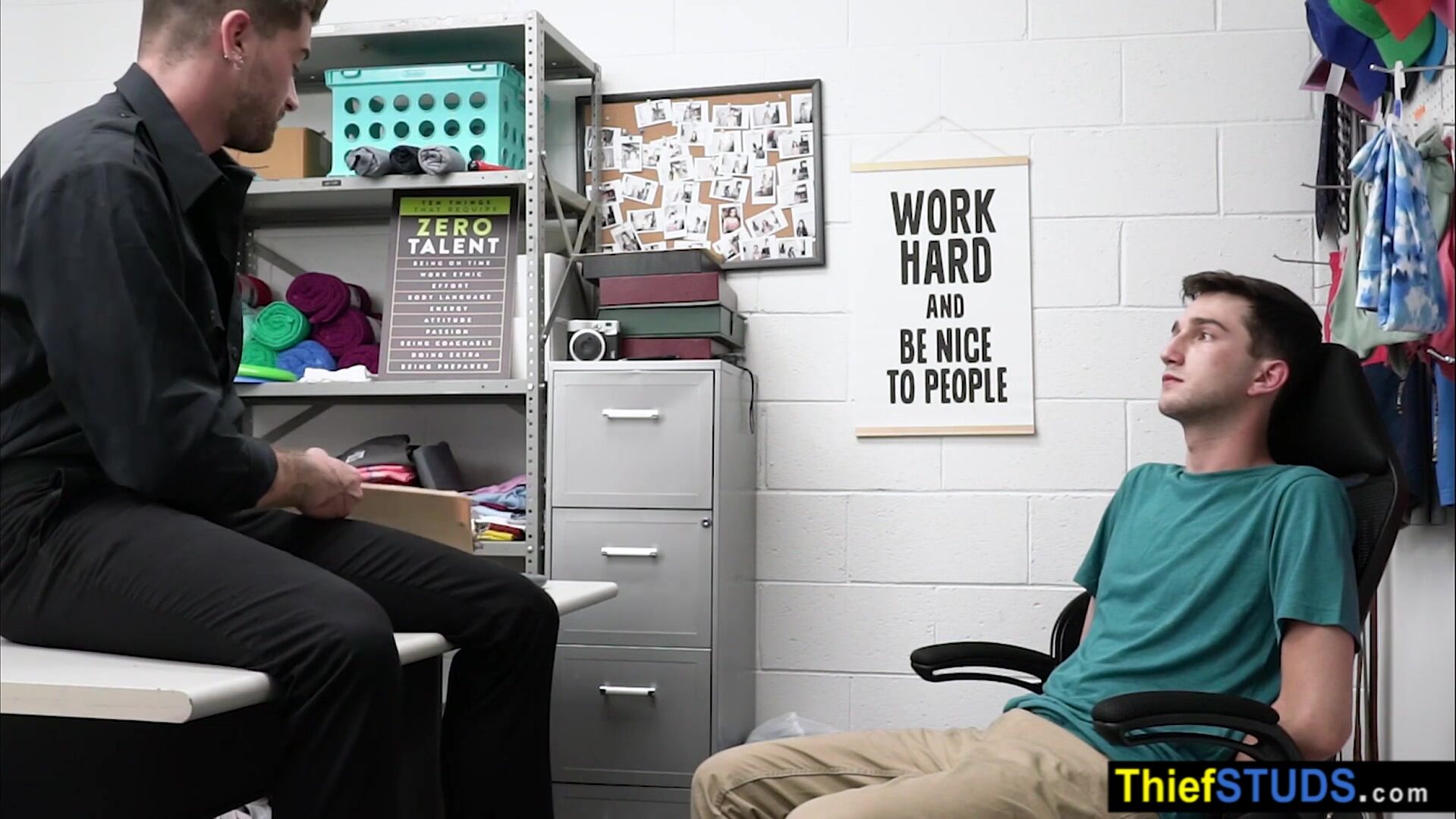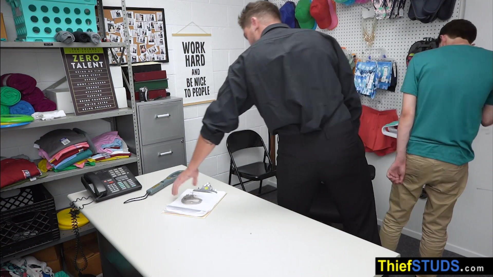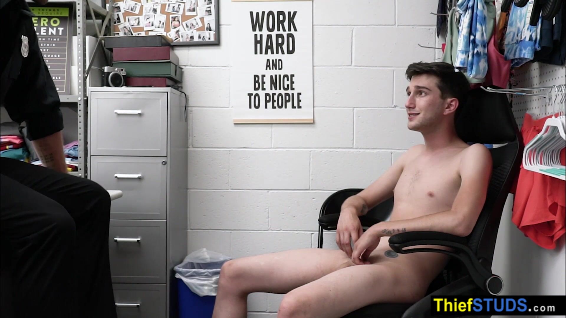 Inked LP officer Chris Damned catches a notorious teen perp He strip searching the reluctant gay so he wants to teach him the rules He ordering him to suck his big dick then he takes a pink dildo to prepare the twinks ass and fucking him bareack