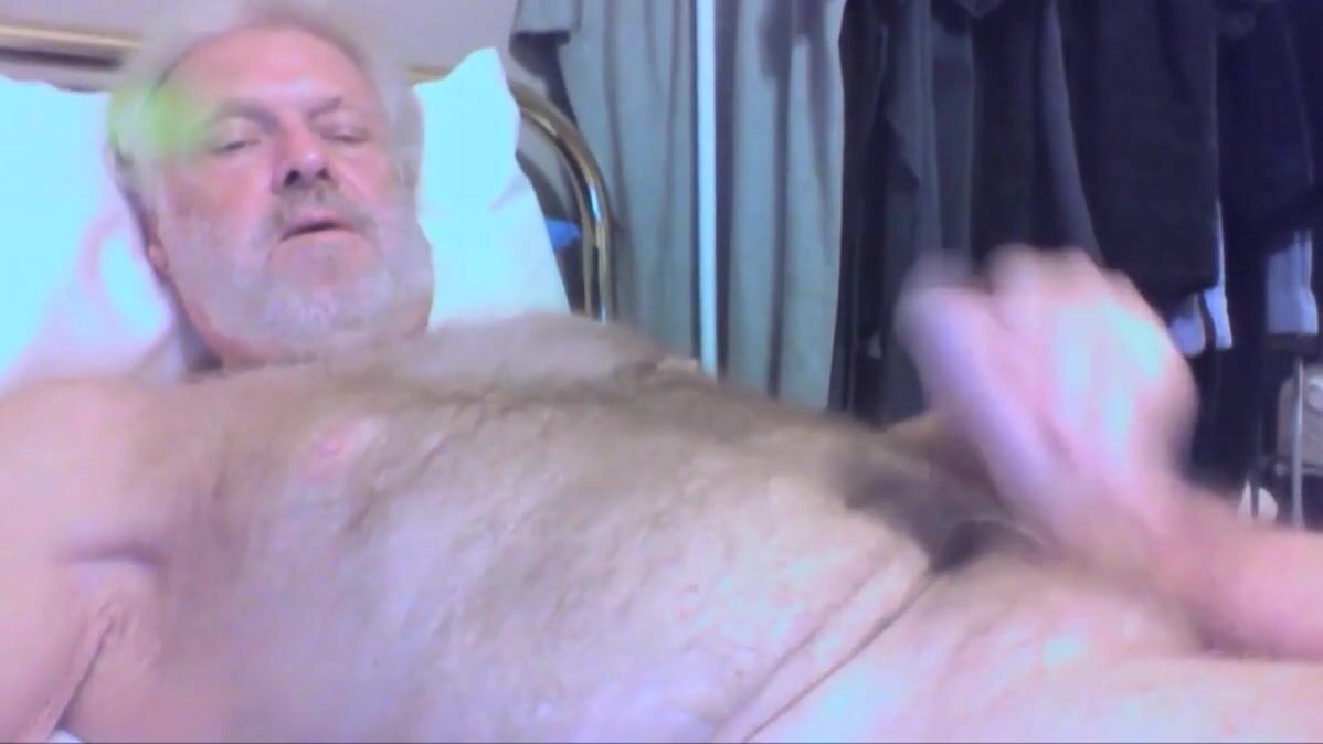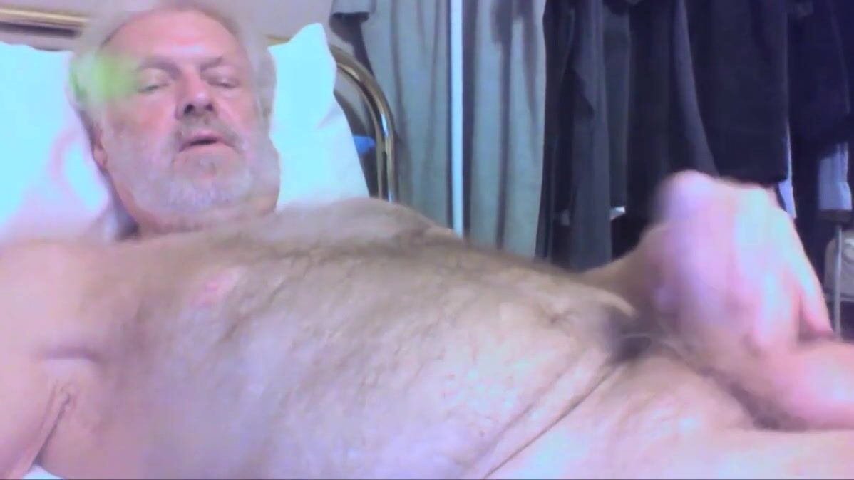 Unloading his cock on his hairy belly