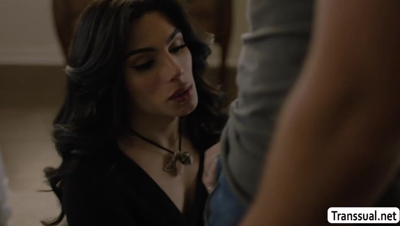 Angry shemale is so mad at her ex boyfriend for sending their old sex video.Instead of reporting him,sexy shemale throats the big cock of her ex boyfriend passionately and in return,the horny dude barebacks her tight wet ass so deep and hard.