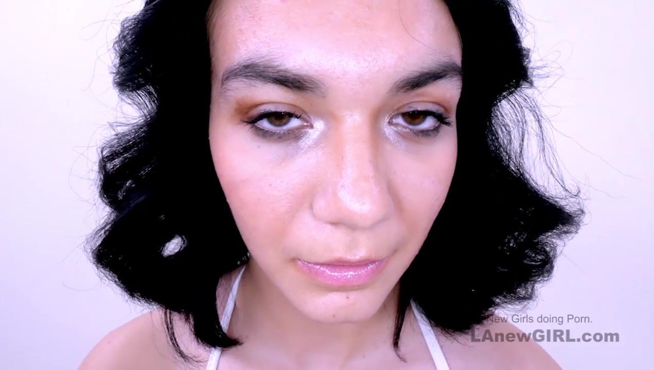 A skinny and petite 19 yo brunette with big beautiful natural boobs is welcome to our studio this week and has never done any photoshoots before our Producer likes her and offers his hard cock to suck and more