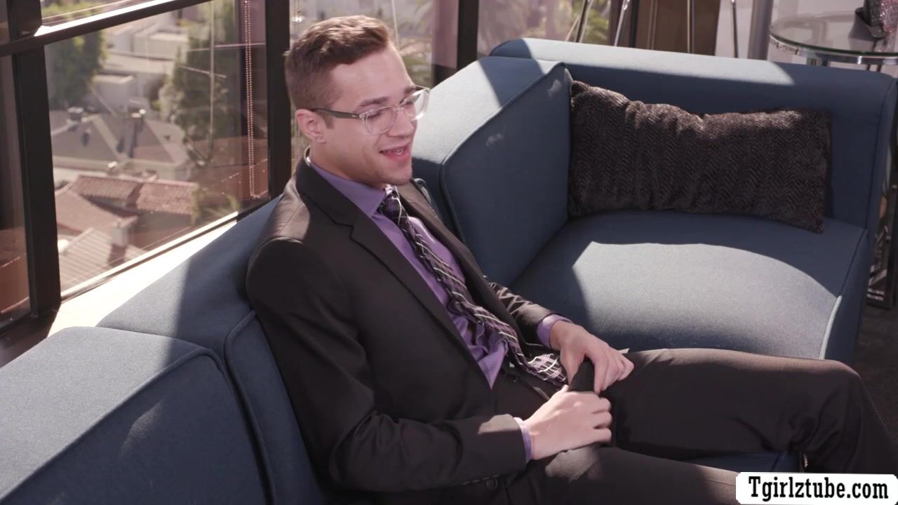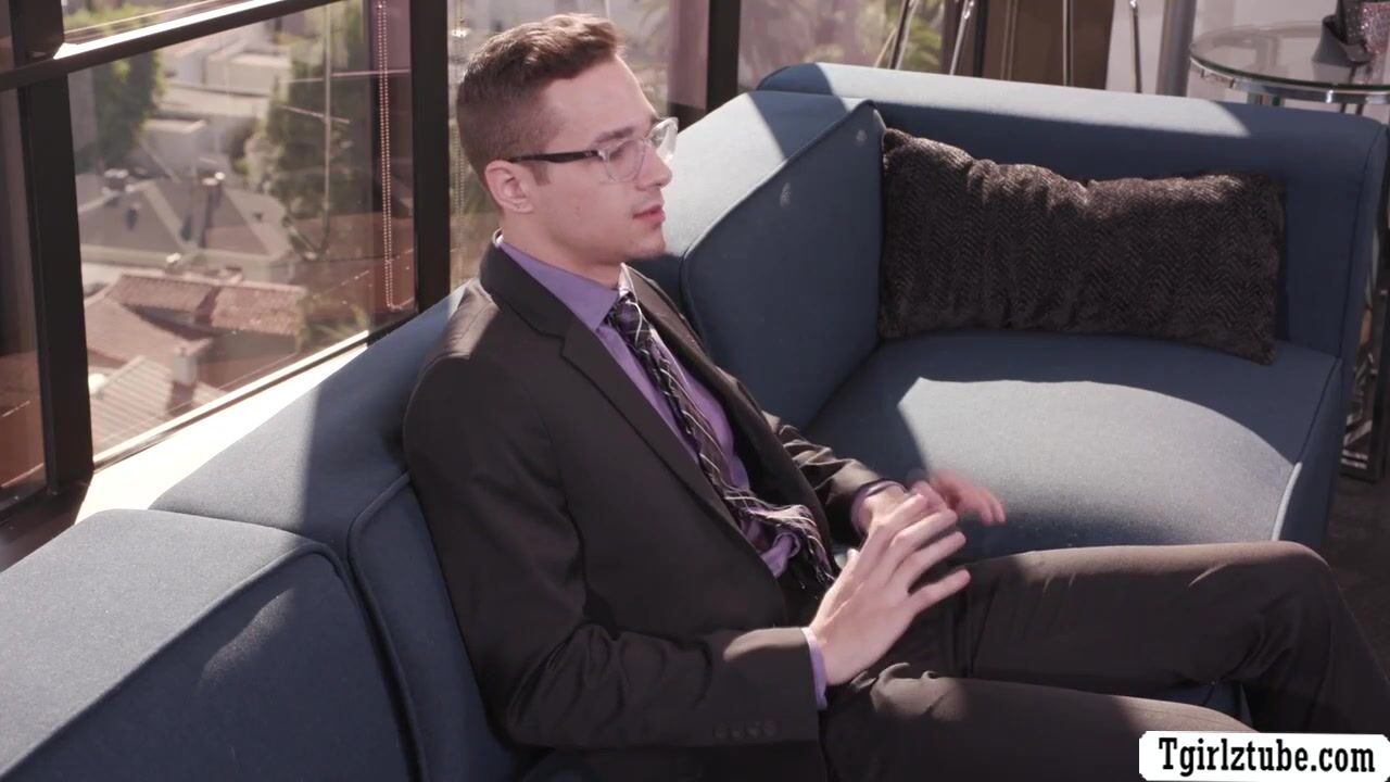 Trans woman boss talks to her handsome client on the couch and she then throats his big cock passionately.In return,the handsome dude licks the ass of trans woman boss to makes it wet before he bareback fucks it so deep and hard.