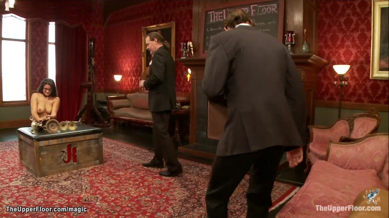 Maestro Stefanos and Owen Gray watching big boobs brunette service slut Penny Barber masturbate then big cock Owen rough anal fucking her in the Upper Floor