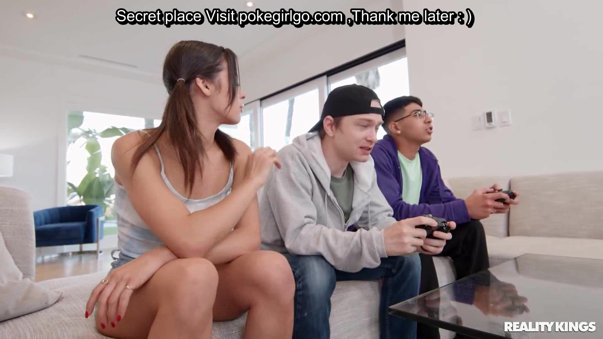 Skinny ts Natalie Mars strapon anal threesome with busty friends