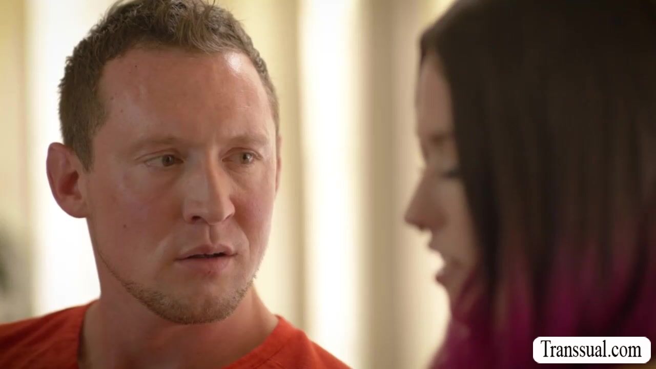 Shemale redhead visited by her handsome stepbro and they start kissing each other on the couch.After that,smalltits TS goes down and throats stepbros big dick passionately.In return,stepbro licks the ass of his trans stepsis and barebacks it after.
