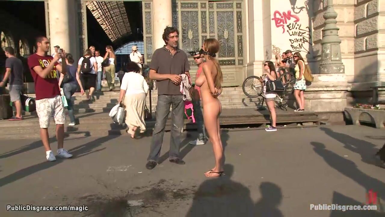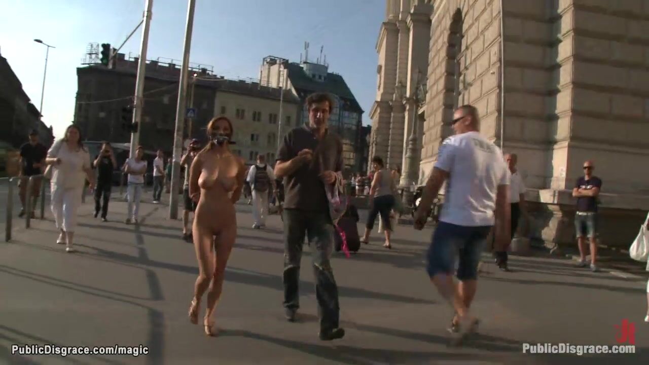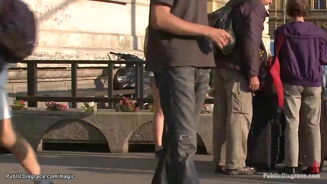 big boobs Romainan slave Alice Romain is stripped naked and humiliated in public street then in other places bound and anal fucked by big dick master Steve Holmes