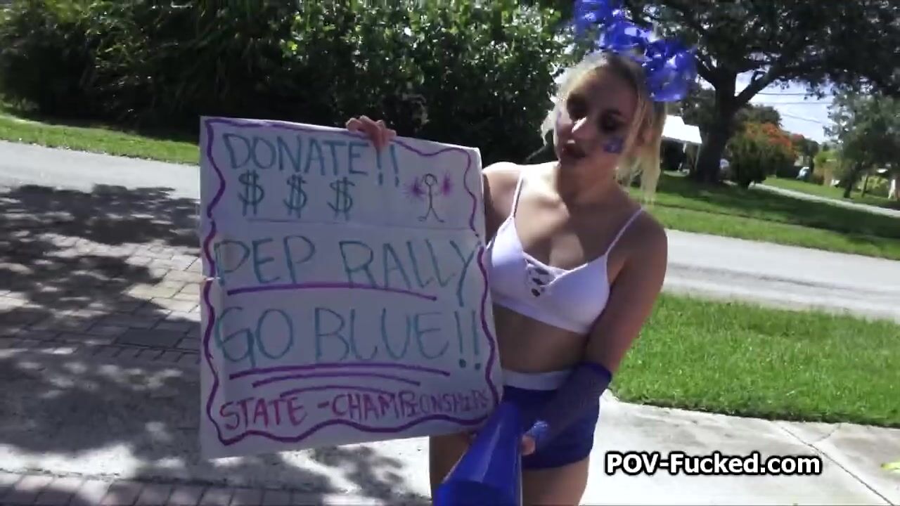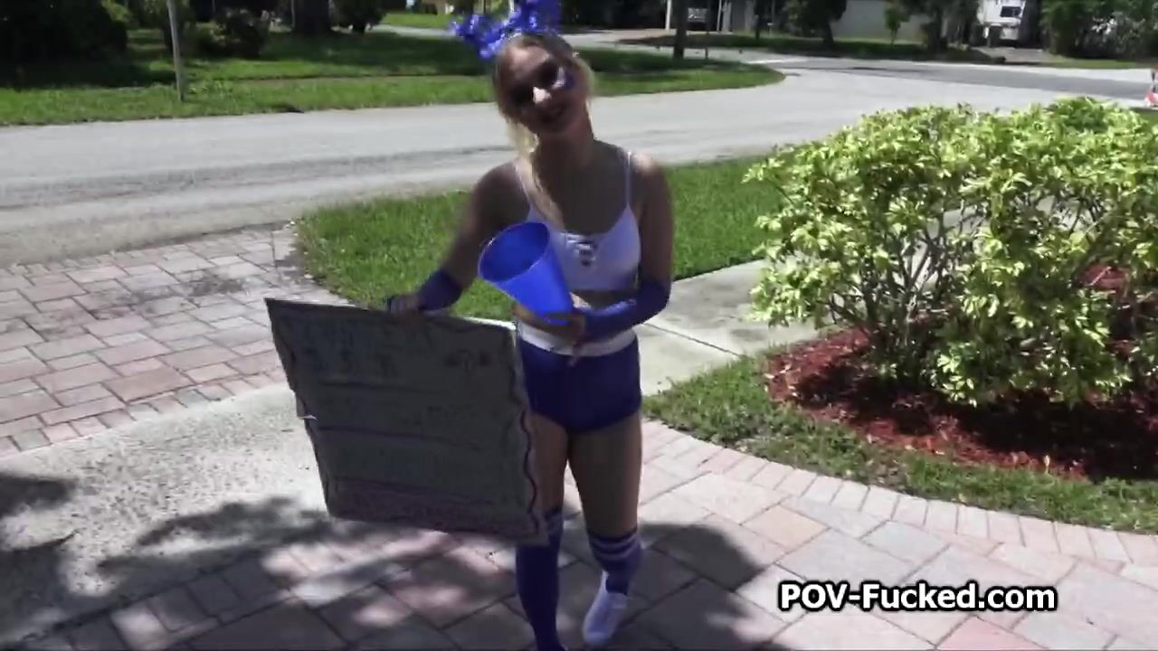 Blonde fucktoy from next door is raising money for her team in a very special way. She even rides my hard dick outdoors to get paid big time!