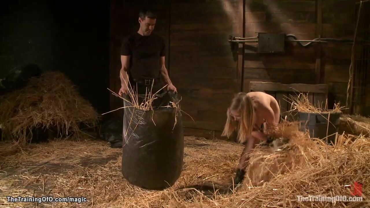 Busty petite blonde babe Penny Pax in back arch bondage vibed and whipped then holded for hair made suck big dick till on all four anal fucked by gimp Owen Gray