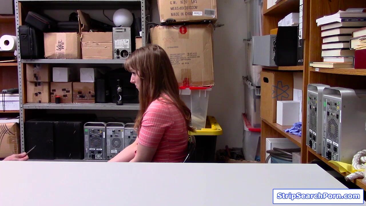 A security officer fills up the report again a teen for shoplifting.He conducts strip search getting her naked.The brunette babe cooperates and lets him caress her small tits.Then she blowjobs his big cock and gets fucked in a doggystyle position.