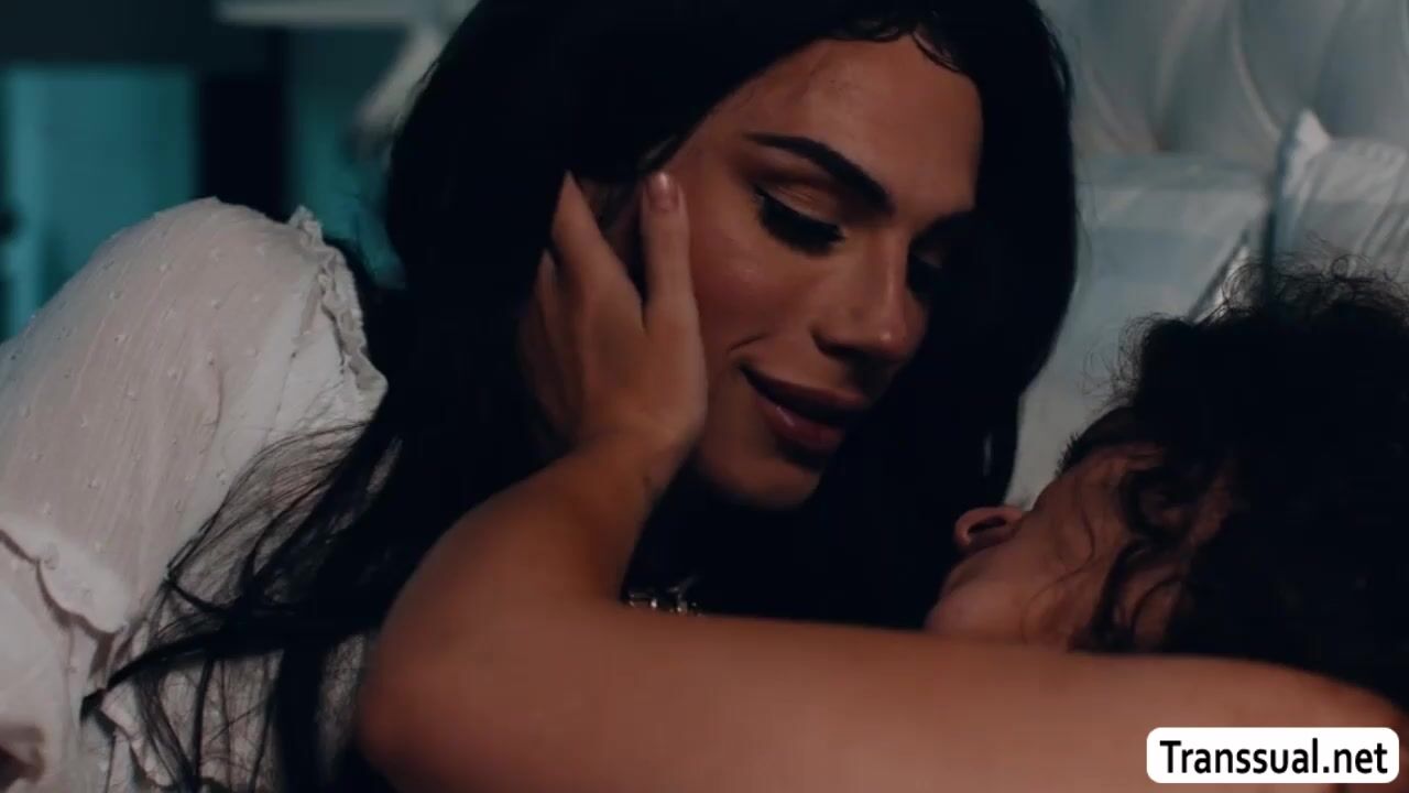 Horny stepdaughter and her shemale stepmom are on the bed cuddling to each other.After that,they start getting horny and kiss each other after.Next is,TS stepmom licks the pussy of her stepdaughter first and she then fucks it so hard.