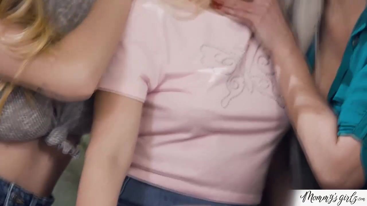 Busty milf stepmom Nina Elle and her lesbian stepdaughter Angel Youngs and her friend Aria Banks exchange kisses.The teens titsuck the cougars big tits.The horny ladies lick their pussies in 69.They continue in scissor sex position.