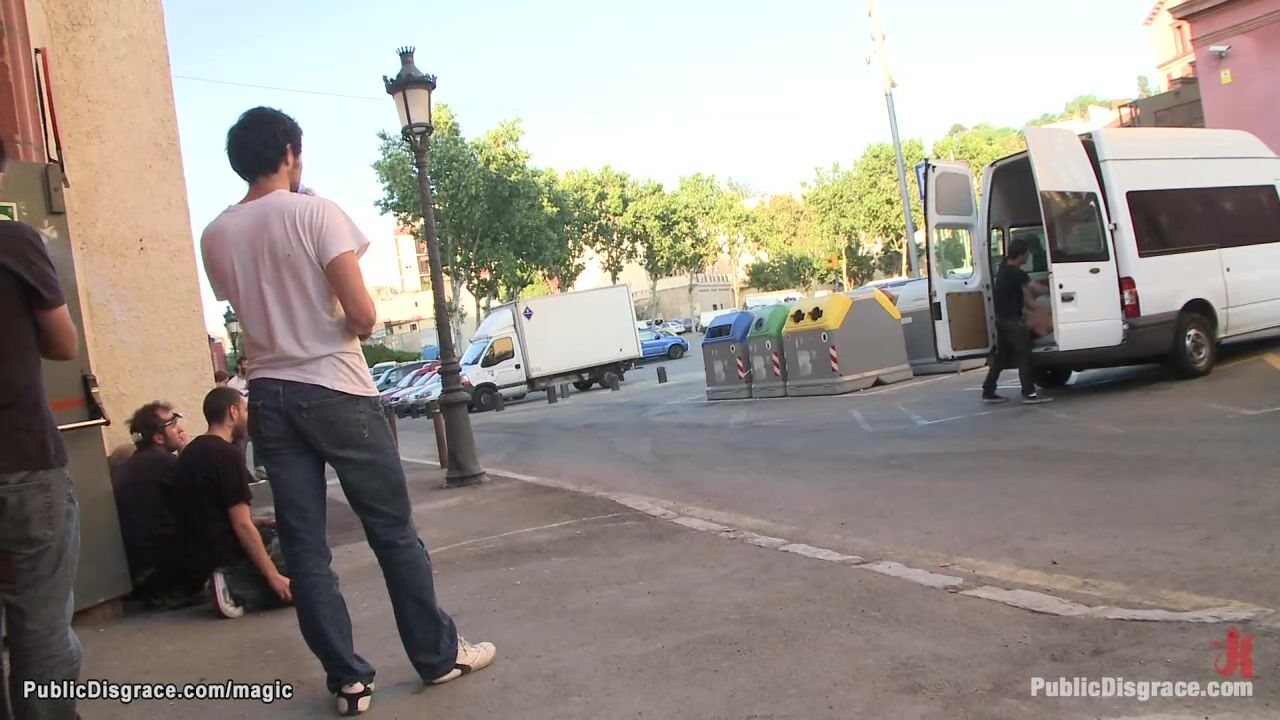 Bound by Princess Donna Dolore slim Spanish hottie Samia Duarte gets mouth fucked in van then pounded in different public places by James Deen