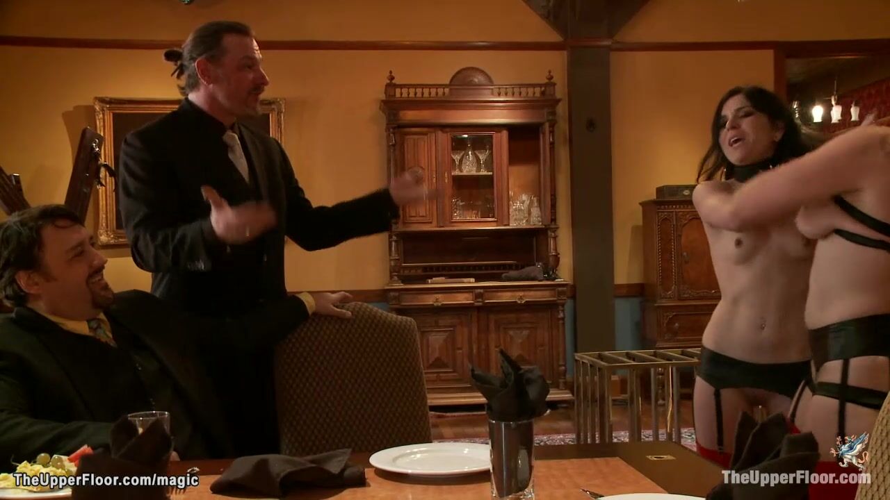 Head slave with big boobs Bella Rossi has cat fight with Juliette March in front of horny guests then fucks ebony Nikki Darling at bdsm party in the Upper Floor